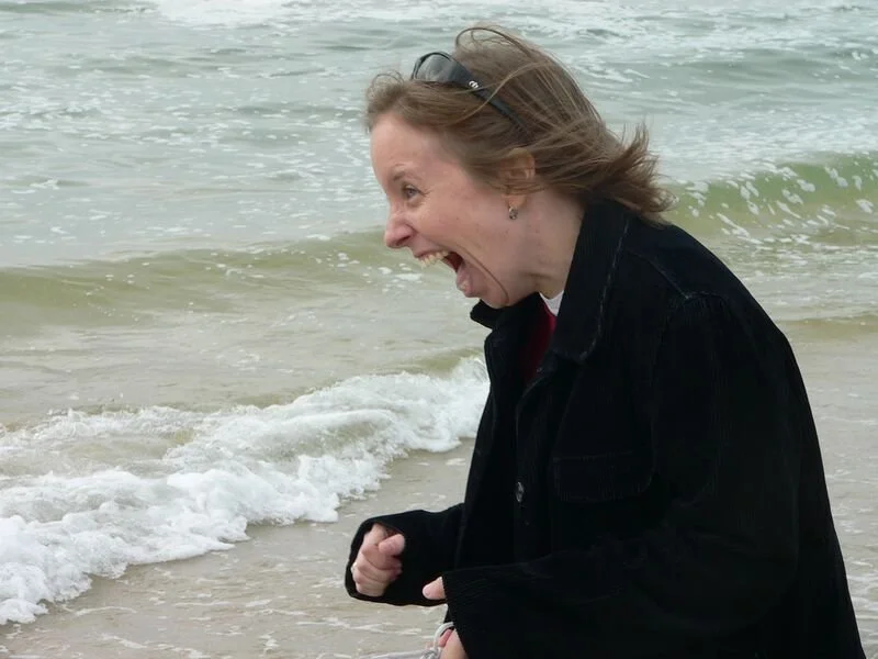 Image: Me screaming as my toes touch the cold Pacific Ocean outside San Francisco, on a trip to visit my then boyfriend (now husband). A trip I would not have been able to take if I’d gotten that promotion… so…