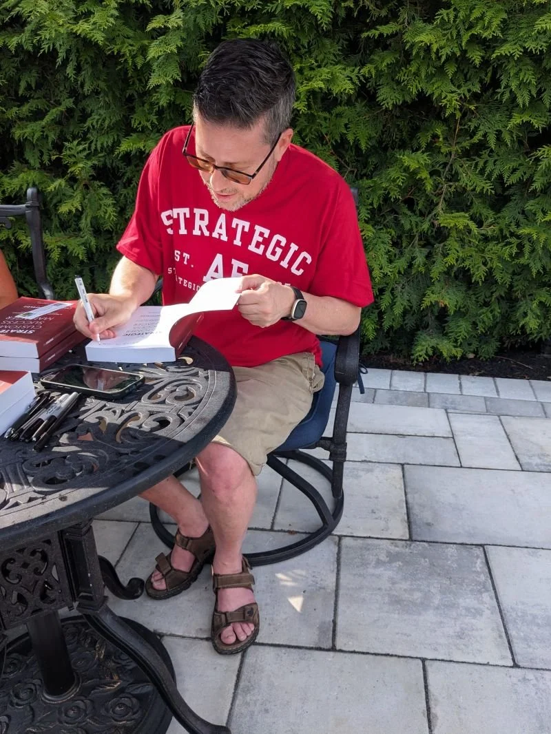 Photo: Chad looking “strategic AF” while signing copies of his book 😉