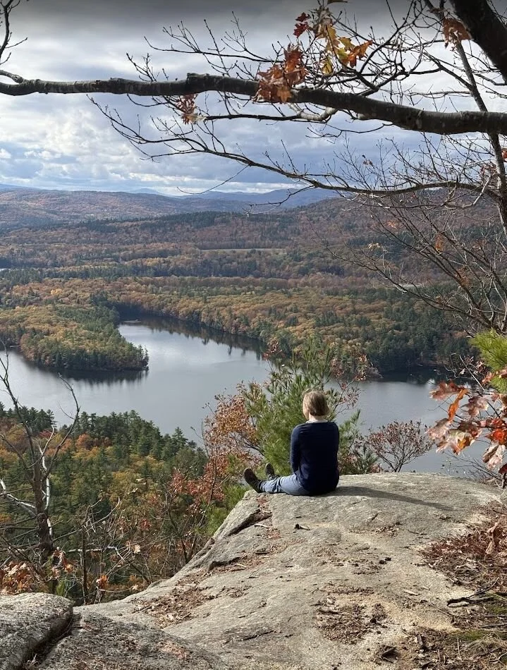 Image: Me sitting on a rock contemplating a beautiful lake and fall foliage in New Hampshire.